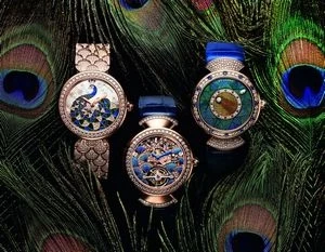 Часы Divas’ Dream с изображением павлина и маркетри из павлиньих перьев