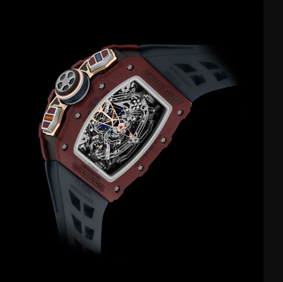 Тираж модели строго ограничен — по 30 экземпляров на каждый цвет корпуса. Корпус выполнен из красного базальтового или тёмно-синего кварцевого TPT — высокотехнологичного материала, пришедшего из авиации и автоспорта. Как и все часы Richard Mille, RM 41-01 отличаются узнаваемым футуристическим дизайном и эргономичным корпусом, рассчитанным на экстремальные нагрузки.