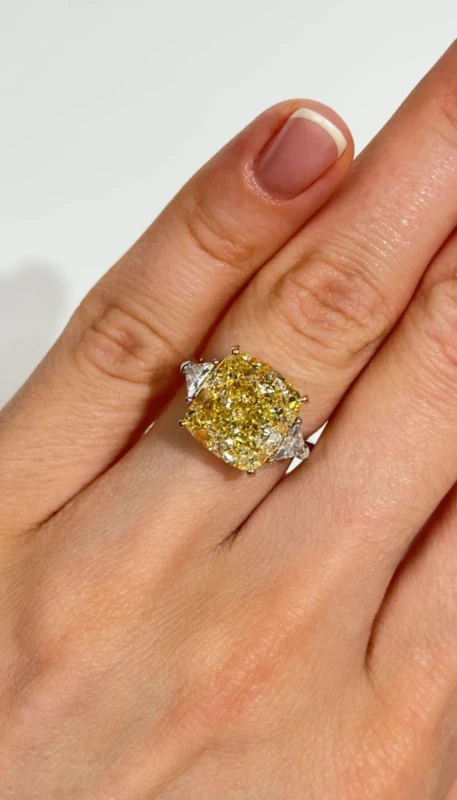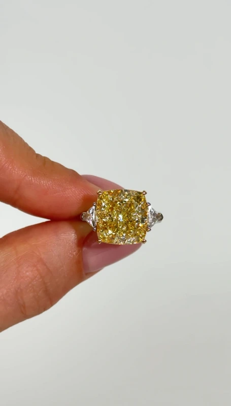 CUSHION DIAMOND 10.02 CT FANCY LIGHT YELLOW/VS1 RING (GIA)
