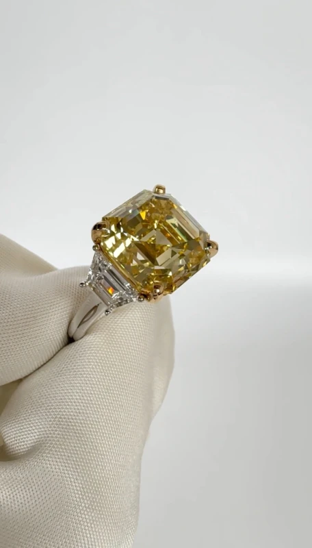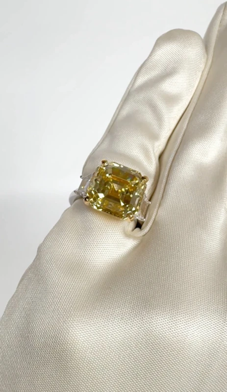 SQUARE EMERALD DIAMOND 10.02 CT FANCY YELLOW/VS2 RING (GIA)
