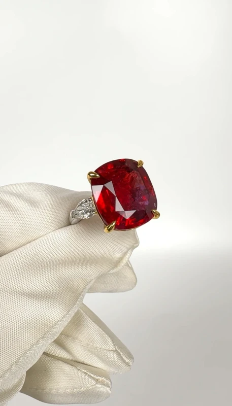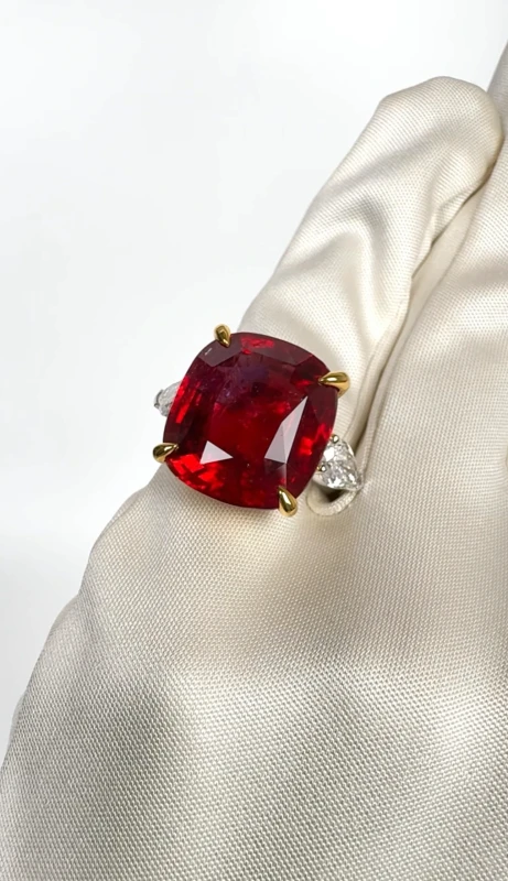 CUSHION RUBY 21.42 CT "VIVID RED" RING (GRS)
