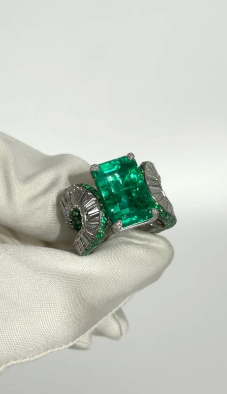 HIGH JEWELRY COLOMBIA GREEN EMERALD 14.002 CT RING (SSEF CERTIFIED)