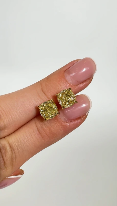 Серьги пусеты No name CUSHION DIAMOND 3.01 - 3.03 CT FANCY LIGHT YELLOW/VS EARRINGS (GIA) NN3.01-3.00FLY (id 40394)