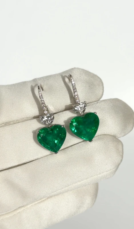 Серьги No name EMERALD 6.08 CT - 5.81 CT INTENSE to VIVID GREEN EARRINGS (GRS) 6.08 CT - 5.81 CT (id 29505)